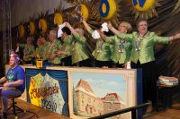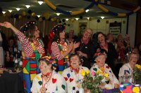 Pünktlich um 15.11 Uhr zog der Elferrat mit den Senatorinnen des Vereins und der Karnevalsgesellschaft Husaren Schwarz-Weiss Siegburg in den festlich geschmückten Saal ein. Dessen Tanzgarde begeisterte die über 400 kostümierten Jecken direkt zu Beginn. In dem bunt gemischten Programm ging es weiter mit Lieselotte Lotterlappen. Der Komiker und Entertainer aus dem Lahntal eroberte die Herzen der Damen im Sturm und band immer wieder das Publikum - und vor allem das Gastronomiepersonal - gelungen in seine Show ein. Da blieb kein Auge trocken.
